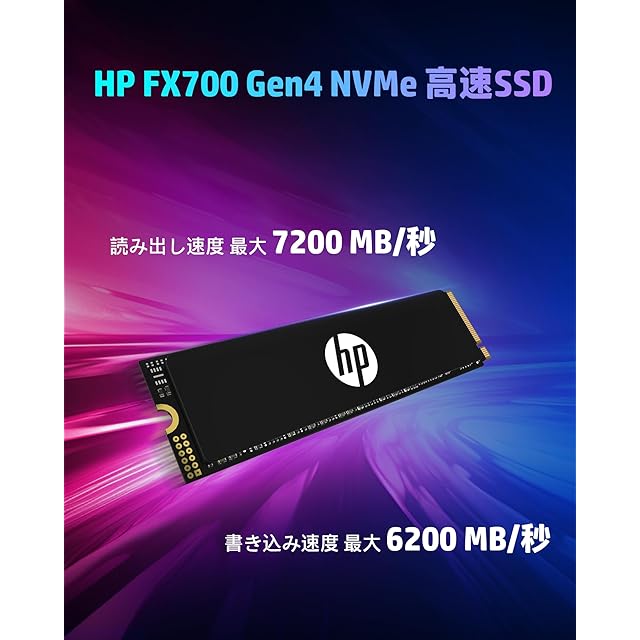 HP FX700 2TB SSD NVMe2.0 M.2 Type 2280 PCIe Gen4×4 最大読込:7200MB/s (R:7200MB/s、W:6200MB/s) 内蔵SSD 高耐久 PS5動作確認済み メーカー5年保証 8U2N5AA#UUF
