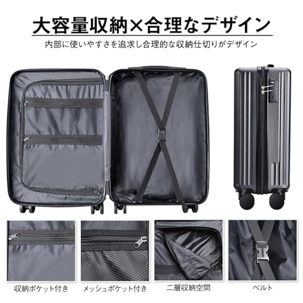 【驚きの収納力!荷物を効率的に整理整頓】 旅行や出張で必要なアイテムをたっぷり収納できる スーツケース 大容量デザイン。仕切りポケットや固定ストラップが付いており、荷物の整理が簡単で中身が崩れる心配もありません。靴、服、ガジェット、スキンケア用品など、用途に応じてきちんと整理でき、荷造りがストレスフリーに。