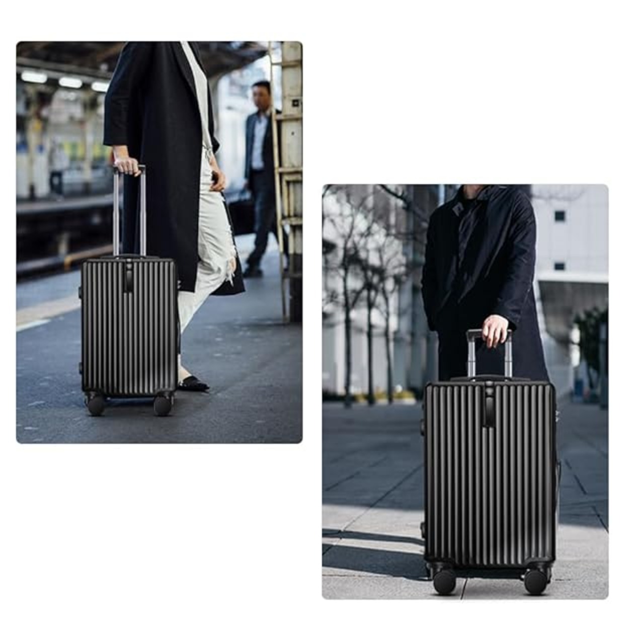 【スムーズで静かな移動を実現!360度回転キャスター】 スーツケース の静音仕様のダブルキャスターで、どの方向にも滑らかに動きます。狭い通路や駅構内、空港の混雑したエリアでも軽快に移動可能。キャリーバッグ のキャスター音が気にならず、早朝や深夜の移動も快適。