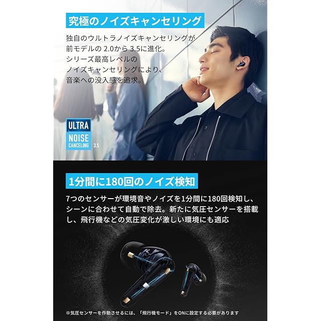 進化したウルトラノイズキャンセリング 3.5:7つのセンサーが環境音やノイズを1分間に180回検知し、シーンごとに最適なノイズキャンセリングを行います。