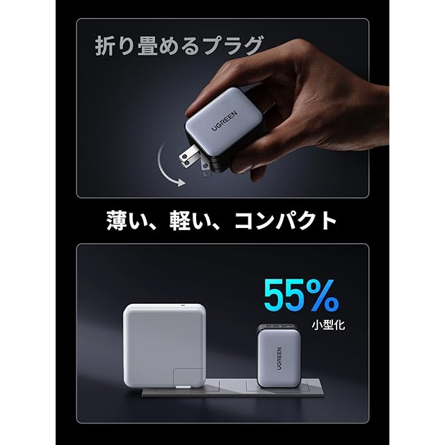 UGREEN NexodeX 充電器 【当社比最小65W 急速充電器】 USB-C*2とUSB-A*1 PD急速充電器 新生代GaNInfinity™チップ 独自Airpyra技術 PD3.0/QC4+対応 自宅/出張/旅行用 ノートPC iPad iPhone16/15/14 Galaxy S24 Pixel8 Xperia5以降対応 超急速充電45W対応 PSE技術基準適合 X754 | primer