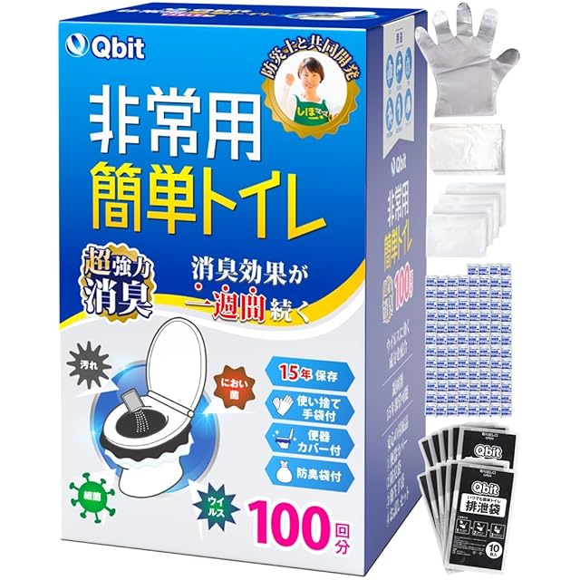 Qbit いつでも簡単トイレ 防災士と共同開発 15年保存 【防災グッズ大賞】 強力消臭 簡易トイレ 防災/災害用/非常用/携帯トイレ 凝固剤10g以上大容量 手袋 防臭袋 お試しセット 付き (強力消臭100回 2人7日分) | primer