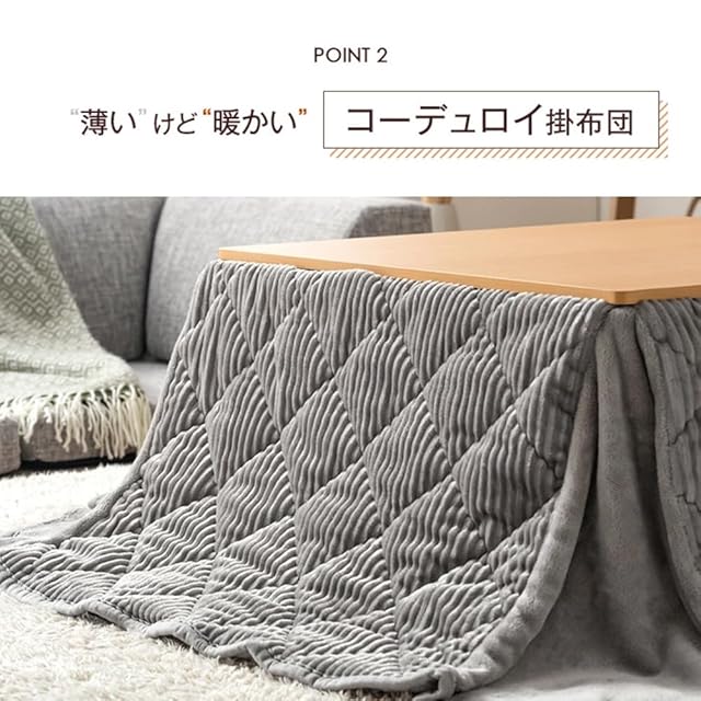 【スタッフのおすすめポイント!】・一人暮らしにぴったりなカジュアルこたつ2点セット ・気分に合わせてイメチェンできるリバーシブル天板 ・場所を取らない省スペース掛布団 ・冬の大定番!保温性に優れたコーデュロイ生地 ・さらに掛け布団はご自宅で洗濯可 ・ヒーターは安心の1年保証付き