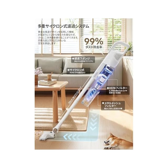 ✨【真空度35000Paの強力掃除機】コード式スティック掃除機は黄金比パイプデザイン、遠心分離技術と最大約35000Pa強吸引力を兼ね備え、驚きの吸引力を備えています。ゴミをキレイに吸着し、高効率のお掃除を実現します。さらに、高速回転モーターにより、ゴミやホコリなどを素早く吸引、お掃除時間を大幅に短縮します。過熱保護機能が付き、ご安心に使用していただけます。電源:AC100V(50/60Hz共通)