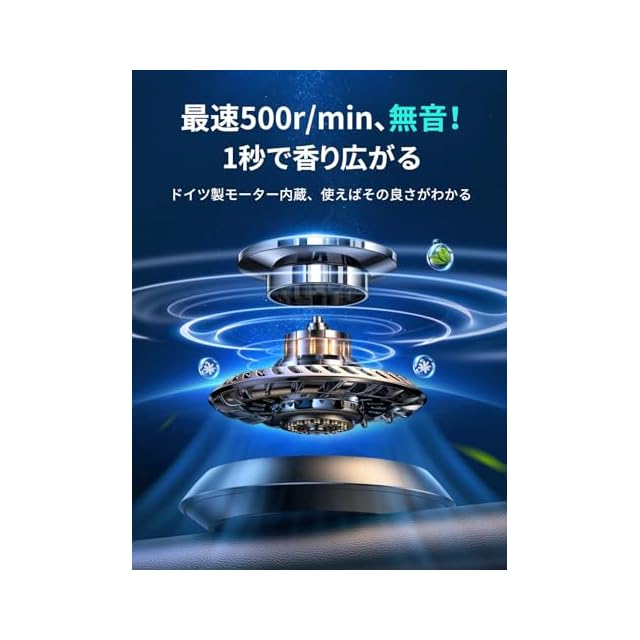 ✅【F21を選ぶ理由①:高速無音】充電不要のドイツ製ソーラー式静音モーターが内蔵。太陽光の下で最大500r/minの速度で香りを拡散し、音は30dB以下で全く聞こえません。