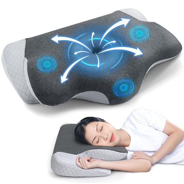 【良い睡眠体験を実現する高さ調節可能】枕は体型に合わせて使えるように設計されています。低めの側が6.5cm、高めの側が8.5cmの2段階高さ調節が可能です。高めの枕が好みの方にも、低めの枕が好みの方にもご利用いただけます。耳と後頭部の凹型中空設計と両側の曲線でデザインされたこの枕は、首の自然な湾曲と背骨の自然な位置をサポートし、頭、首、肩をしっかりと優しくサポートします。※サイズ表記は実寸のため、多少の誤差が生じる場合がでさいます。予めご了承ください。