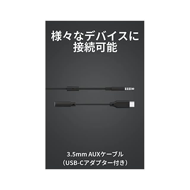 マルチデバイス:標準3.5mm Aux接続でPC、モバイル、Xbox、プレイステーション、任天堂デバイスなどに対応。付属のUSB-Cアダプタでさらに多くのデバイスにも接続可能です。