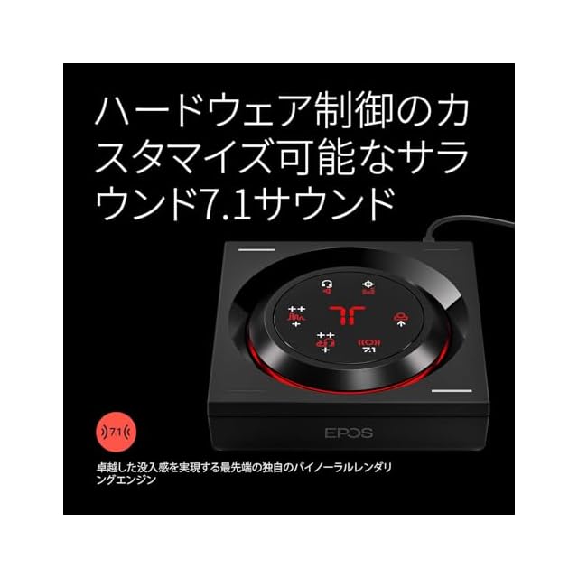 7.1 サラウンドサウンドと、ゲームオーディオとチャット音声の個別ミキシング機能を備えたDAC搭載ミックスアンプ 。