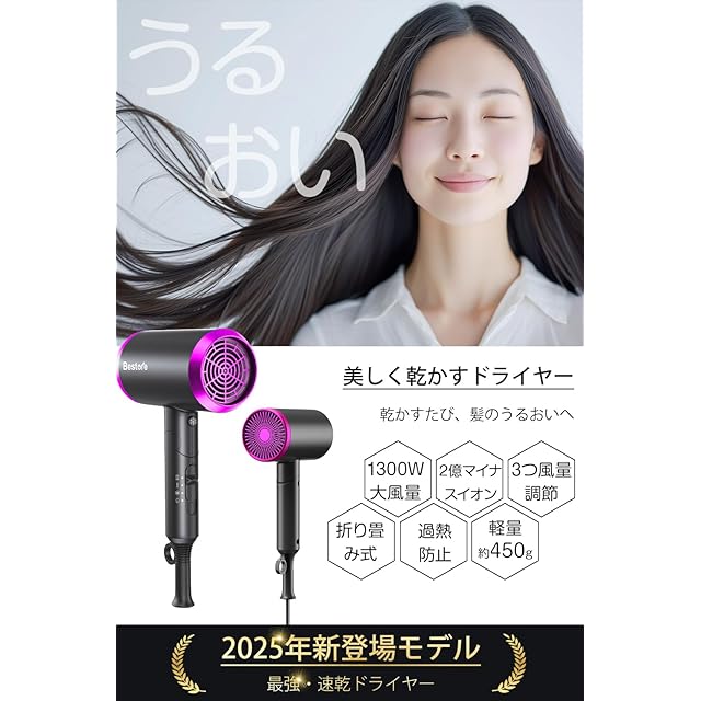 【速乾・大風量で素早く効率的なスタイリング】 1300Wのハイパワーと大風量機能を搭載し、短時間で髪を乾かしながら理想のヘアスタイルをキープします。この強力な性能により、忙しい朝のルーティンやお出かけ前の準備も驚くほどスピーディーに完了します。時間に追われる現代人の生活スタイルに最適な機能性を備えています。