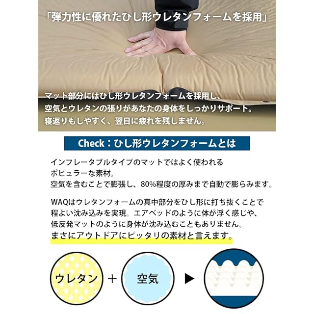 ✅災害時の睡眠にも役に立ちますので防災マットとしても車に積んでおけば安心です。✅【自動膨張!特大バルブ 2個搭載】バルブを開くと自動で空気が入ります!さらに特大バルブを2個搭載した事で膨張スピードを上げました!約3分ほどで使用できるまで膨らみます ✅【ズレない滑り止め加工】マット裏面には滑り止め加工を施していますのでフローリングの上や滑りやすい場所でも安定してご使用頂けます。