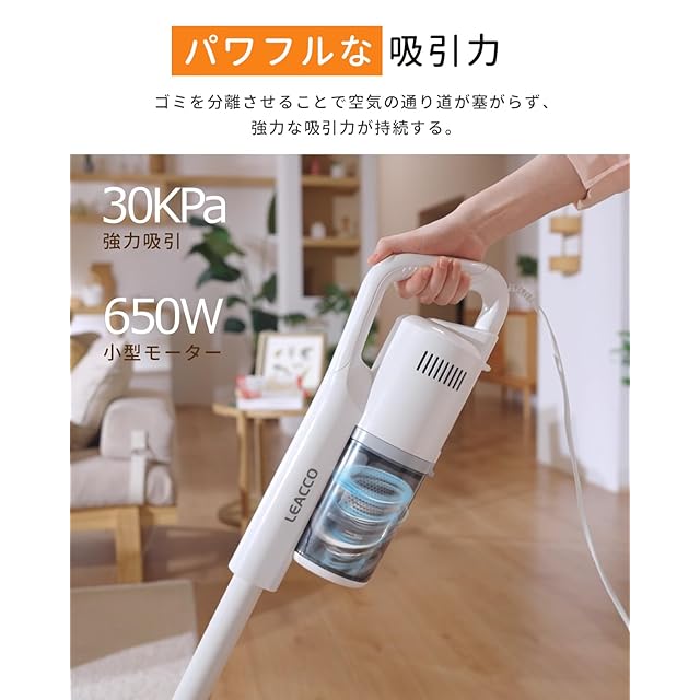 ✨【30000Pa超強力吸引】Leacco 掃除機 ブラシレスモーターの上に遠心分離技術を盛り込んで、最大30000Paハイパワーで満足の吸引力を実感できます。通ったフローリング、毛の短いカーペットは隅にも奥にもゴミを残しません。お菓子・髪の毛・ペットの毛・ホコリ・砂や小石など全て強力に吸い込みます。今ご注文いただくと、交換用フィルターがもらえる!お気軽に説明書の連絡先より弊社までご連絡ください!