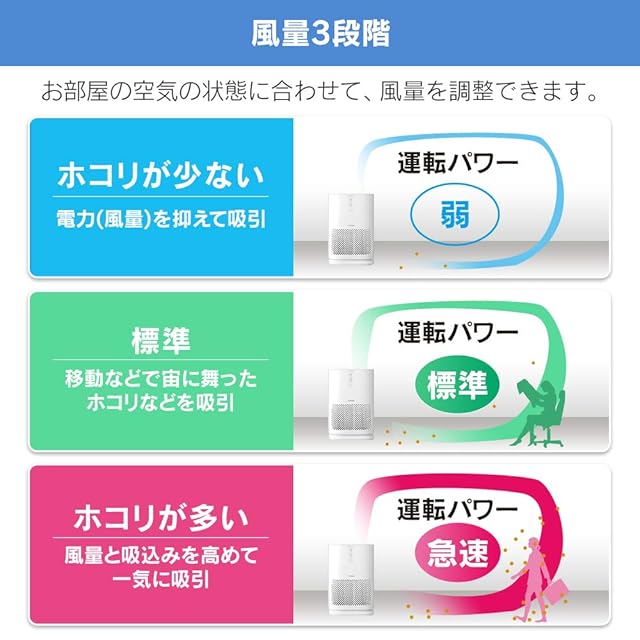 運転音:*おやすみ(最小):31/31dB*強(最大):46/48dB
