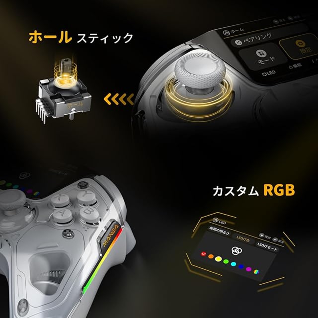 ManbaOne PC コントローラー 多機能LCDディスプレイ付き ドリフト防止ホールスティック ホールトリガー Switch スリープ解除 連射機能プロコン PC/Switch/Android/iOS対応 4つ背面ボタン ゲームパッド 有線/無線接続可能【新しいパッケージ】