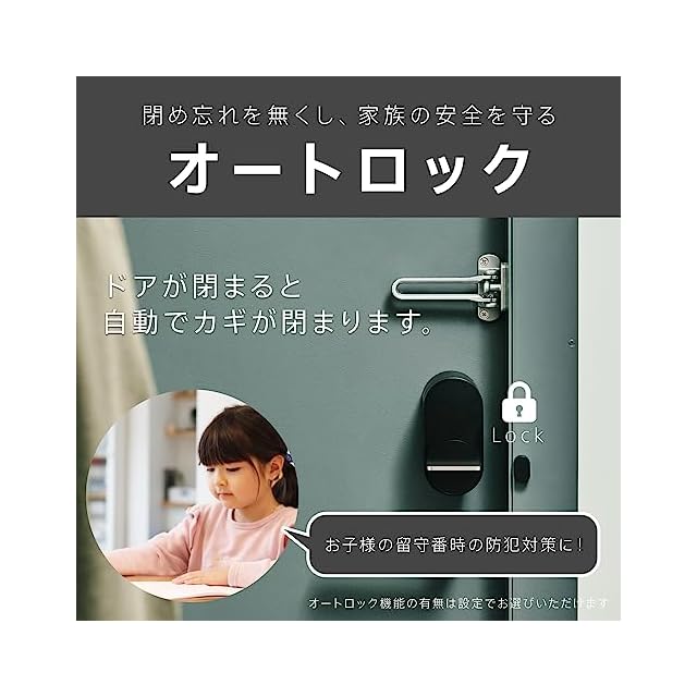 【ドアに近づけば解錠、ドアが閉まればオートロック】ハンズフリー解錠機能搭載で、ポケットにスマートフォンを入れておけば、手に取らなくともドアに近づくと自動的にカギを解錠します。またオートロック機能も搭載しているので、鍵の閉め忘れを防げます。オートロック一時停止機能もあるため、ゴミ出しなどのちょっとした外出時も便利です。※ハンズフリー解錠機能/オートロック機能は、ON/OFFの設定が自由に可能です。