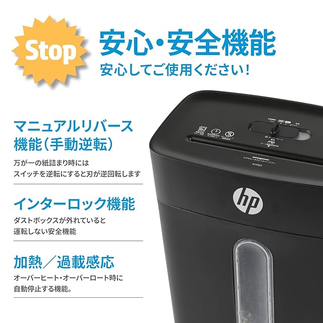 HP 電動シュレッダー 家庭用(15L / 1-3人用) 静音65dB 18ヶ月メーカー保証 / 5x18mmミニクロスカット6枚同時細断(リモートワーク/在宅勤務/オフィス) 連続細断4分間 大容ダストボックス(160枚収納)/ 小型スリム/キャスター無し ブラック | primer