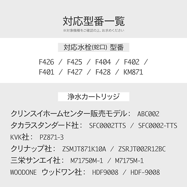 対応メーカー:三菱ケミカル・クリンスイ(cleansui)、タカラスタンダード、KVK・クリナップ、ハーマンharman(ノーリツ)、三栄サンエイ社、WOODONEウッドワン社、