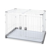 【商品説明】:3つのお掃除機能でお手入れが簡単なお掃除楽ちんサークルです。便利な仕切り付きで、トイレトレーニングに最適。留守番時等のペットの飛び出しを防止する屋根付き。【1】トレーが引き出せる 丸洗い可能。【2】扉がフルオープン 奥まで拭き掃除が簡単! 【3】コロ付きで移動が簡単! 床掃除に便利。