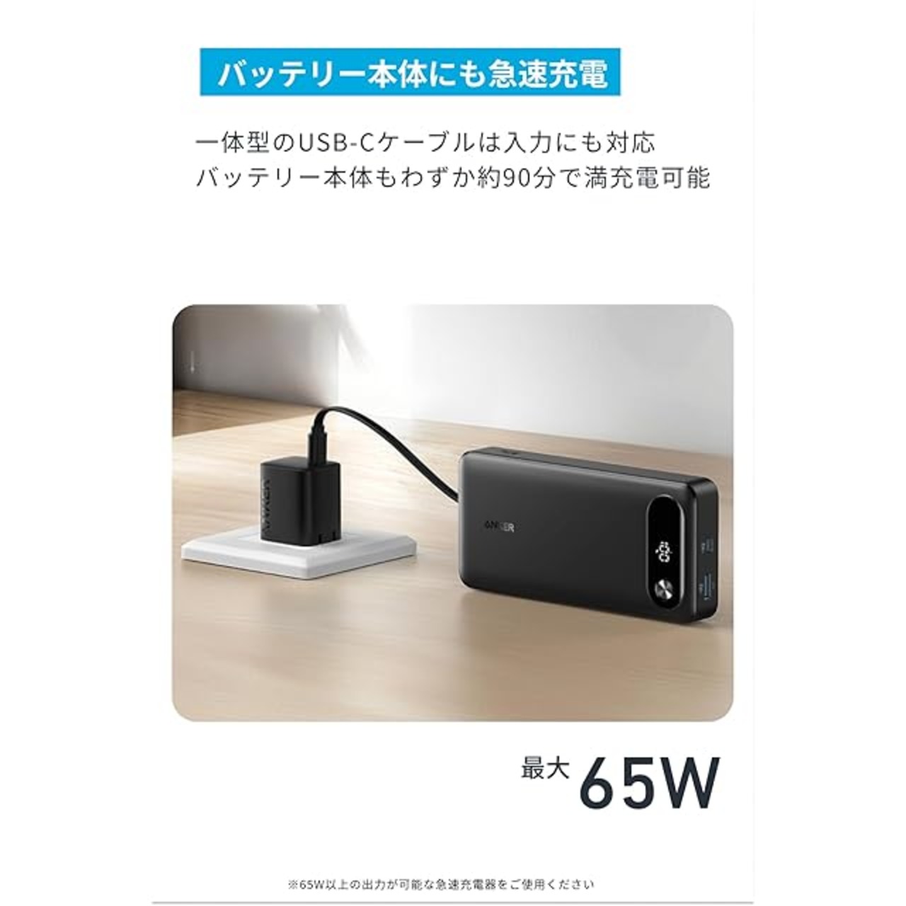 Anker Power Bank (20000mAh, 87W, Built-In USB-C ケーブル) (モバイルバッテリー 20000mAh 87W出力 大容量 LEDディスプレイ搭載 USB-Cケーブル内蔵)【USB PD/PowerIQ搭載/PSE技術基準適合/急速充電】iPhone 16 / 15 Android MacBook その他各種機器対応 (ブラック)