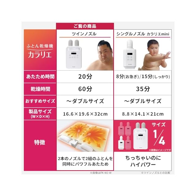 温風でふとんをあたため、湿気とカラリととばす「カラリエ」。 ツインノズルだから2つの布団も一気に同時あたため&乾燥!