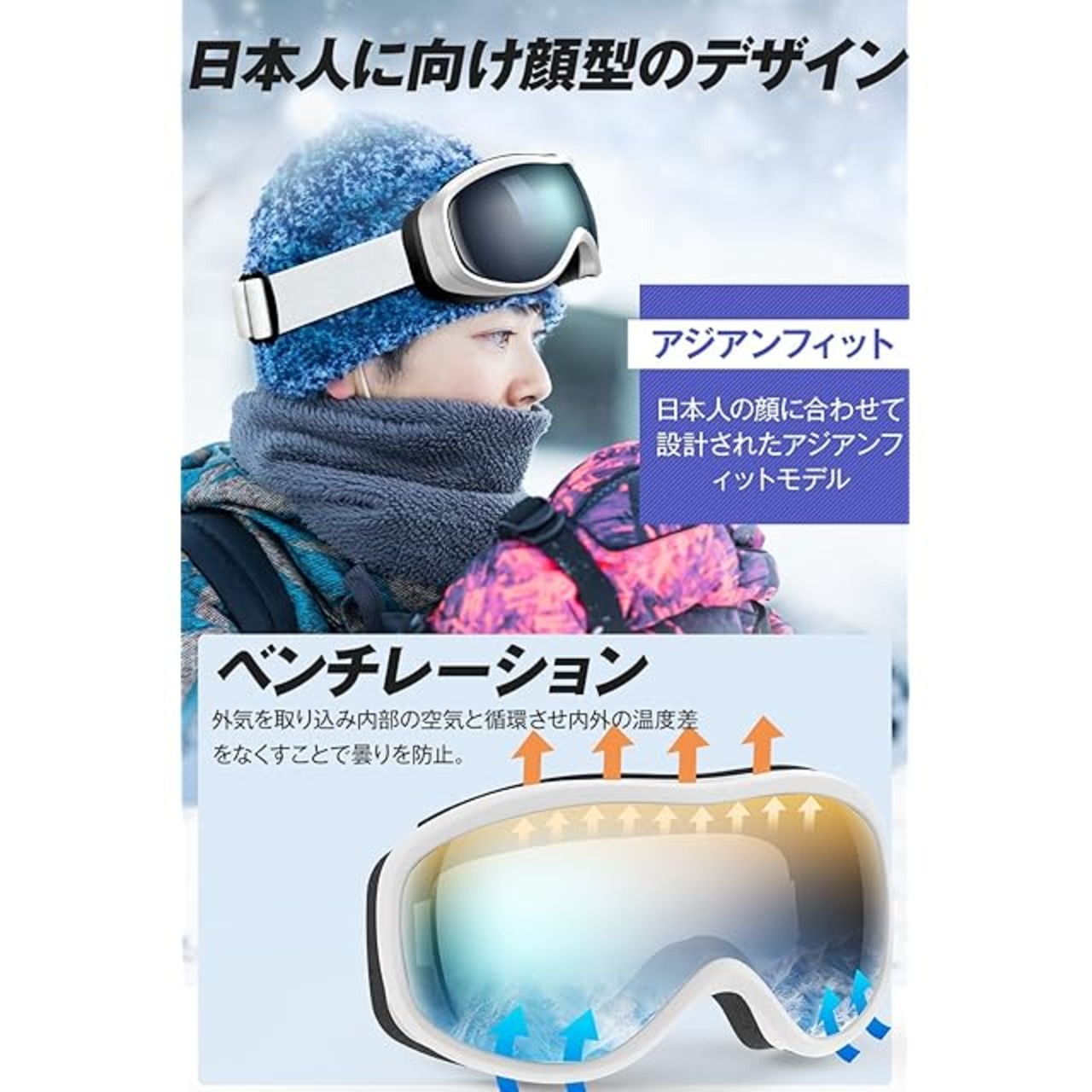 【2025新登場・紫外線100%カット】スキーゴーグルの雪面は紫外線の反射率80%で、四方八方から反射した紫外線が飛んでくるので、眼に大きなダメージを受ける可能性があります。こちら高機能スキーゴーグルは、100%の紫外線を完全にブロックし、目を有害な紫外線から守ります。紫外線による眼のダメージを軽減し、快適なスキーやスノーボードの体験できます。