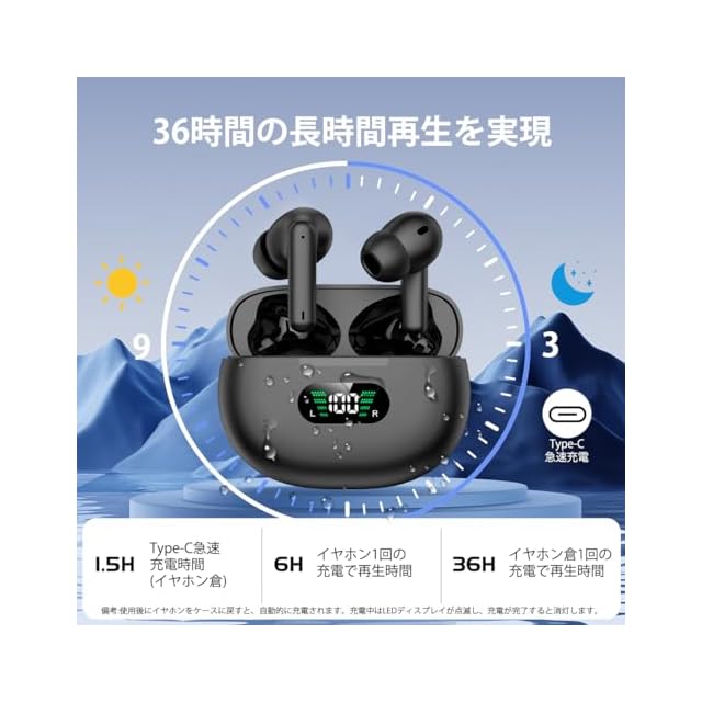 【パワーアップ】 最大6時間での音楽再生ができ、イヤホン本体はフル充電で最大4時間、充電ケースを合わせて使用すると、さらに最大6時間の音楽再生が可能です。