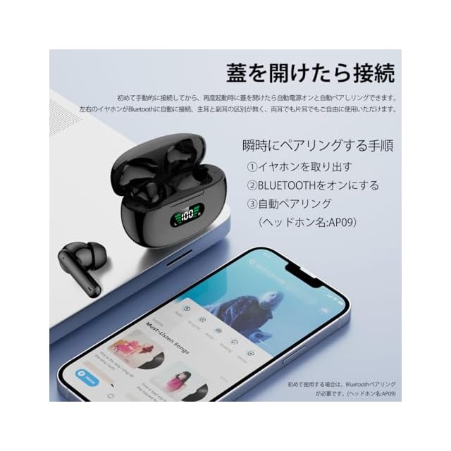 【自動ペアリング&メモリ機能】 充電ケースの収納部分にはマグネットが装備されており、イヤホン収納時にしっかりと吸着し、失くしたり落としたりする心配がございません。さらに、ケースからイヤホンを取り出すと自動的にペアリングモードになり、簡単にBluetooth接続ができます。充電のケースから出し入れするだけで電源ON/OFFを切り替え、端末とのペアリング設定モードが自動で起動します。2度目からの使用には設定不要で自動的に端末を識別することができます。