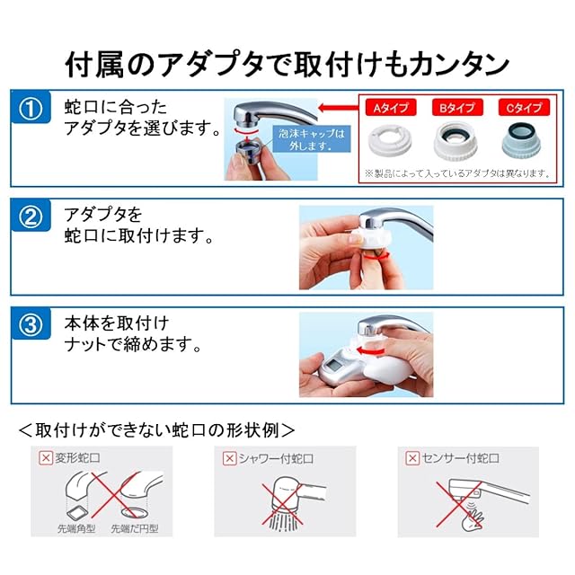 【洗える吐水カバーでいつでも清潔】水の出口である吐水口カバーが簡単に取り外し可能。外して洗えるので、いつでも清潔に保てます。【大きく見やすいデジタルサイン】浄水の使用残量を1L単位(目安)で表示するので、カートリッジの交換時期を忘れず安心。無駄なくカートリッジを交換できます。