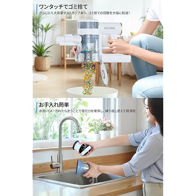 ✨【2WAY仕様&細かな部分までの配慮】OZURIAコードレスクリーナーは10段階伸縮可能なパイプ付き、身長に合わせて調整することで子供でも楽々に掃除できます。掃除機が軽量で床面はもちろん、カーテンなどの高い所もラクラクお掃除!さらにスティック掃除機とハンディ掃除機の2WAYモデルが展開されており、付属のノズルを交換することで階段・布団・家具の隙間・車を気軽に掃除します。
