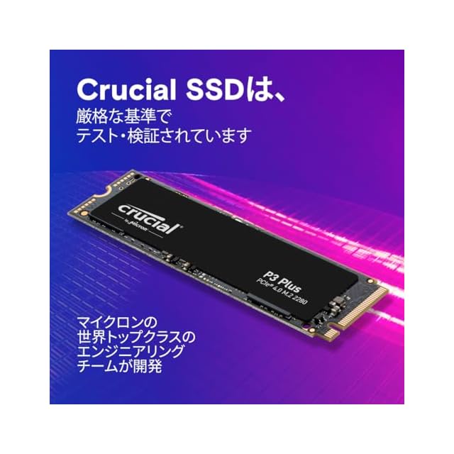 ✅[パワフルなパフォーマンス] お使いの PC を必要な価格で高速な Gen4 パフォーマンスにアップグレードします。Crucial P3 Plus NVMe SSD は、ロード時間とデータ転送速度が SATA 5の 8.9 倍 、最速の Gen3 SSD より 43% 高速です。