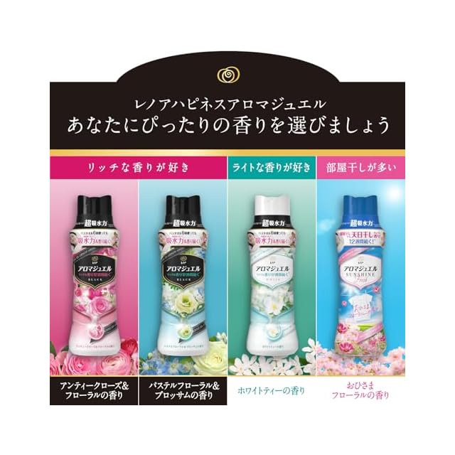 [ケース販売] レノア ハピネス アロマジュエル 香り付け専用ビーズ パステルフローラル&ブロッサム 詰め替え 特大 1,080mLx6袋