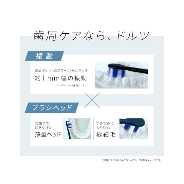ヨコ方向へのリニア音波振動(約31,000ブラシストローク/分)で歯と歯ぐきの間にあてるだけで、歯科医師推奨の磨き方(※バス法、スクラビング法※)ができる。
