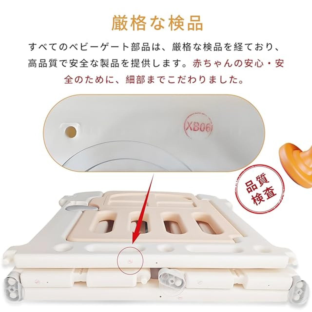 【耐久性】強固な素材で作られており、非常に高い耐久性を誇ります。お子さんが元気に走り回ったり、強く突っ込んだりしても、ゲートが壊れる心配はありません。さらに、ゲート自体は高品質な素材を使用しており、衝撃や摩耗にも強いため、日常的な使用に耐えることができます。お子さんの成長に合わせて、長い間活躍するアイテムです。