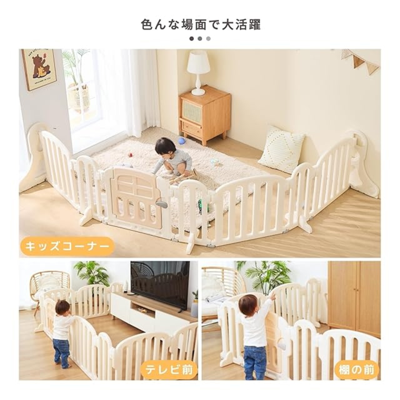 【多機能性】赤ちゃんだけでなくペットにも適用できる多機能性を持っています。ペットフェンスとして使用することで、ペットを特定のエリアに制限し、家庭内での安全を確保できます。例えば、キッチンやリビングルーム、廊下など、ペットがアクセスしてほしくない場所を簡単に隔離できます。お子さんとペットがいる家庭では、1つのアイテムで両方の安全を守ることができ、無駄な出費を抑えることができます。