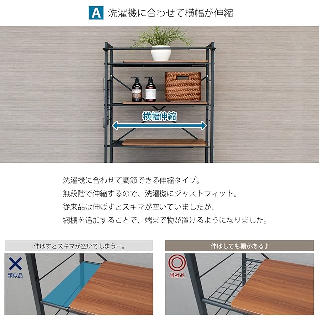 ekans(エカンズ) 棚付きランドリーラック LSH-530B 棚3段タイプ (ブラック) | primer