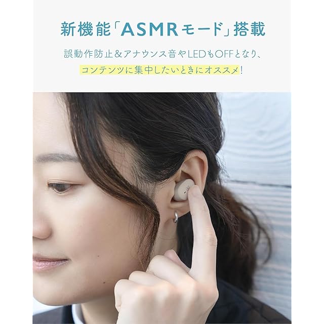 新機能「ASMRモード」搭載:本体を5回タップすることで切り替え可能で、タップ操作及びガイダンス音声を無効にします。モード中は5回連続タップのみ操作を受け付け、通常モードに戻すことも可能です。誤タッチを防ぎたいときやASMRコンテンツなどにより没入したいときにご使用ください。