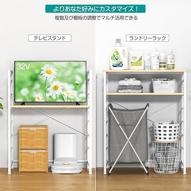 【耐荷重70Kg・1年保証】天板が美しい木目調のブラックとナチュラルの2色展開でインテリアに馴染みやす、圧迫感を感じない組み合わせです。開放式のラックで通気性もよくどこになんかがあるかも一目瞭然!キッチンラックの底部は補強パイプと横揺れ防止のクロスバーの設計で総耐荷重約70Kgあり、大型電子レンジ以外、食洗機も置くことができます。