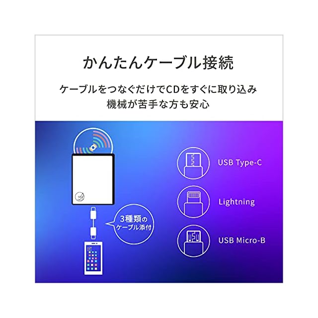 USB Type-C / USB Micro B / Lightning に対応した Android / iPhone 両対応CDレコーダー