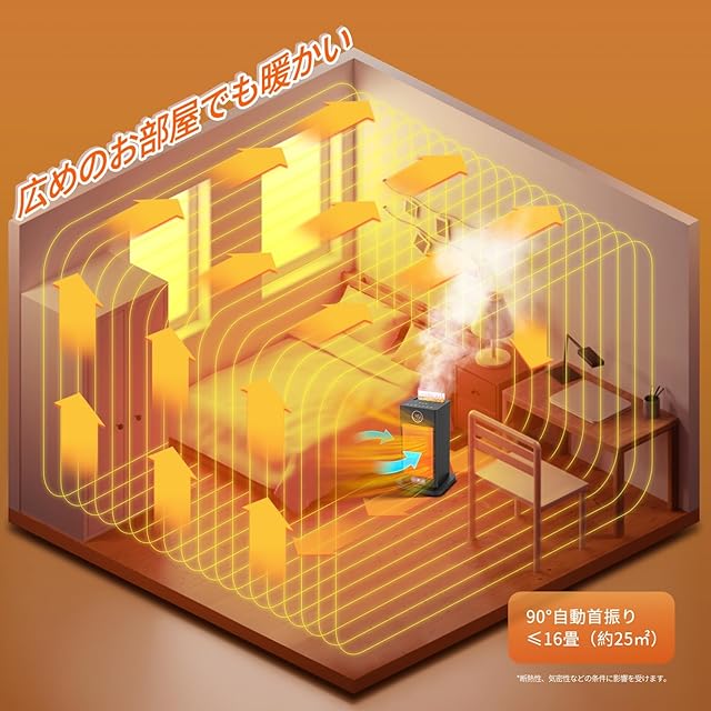【超音波加湿器付き】暖房と加湿の併用も可能で、部屋の隅々まで温もりと潤いを届けます。本製品はグラフェン技術を採用し、タービン空気対流なのでヒーターのスイッチを入れてからすぐに熱風が出ます。待ち時間なしですぐに暖かな風が出ますので朝の忙しいときの身支度、帰宅した直後などで、すぐに手や足を暖まりたいというときにもピッタリです。