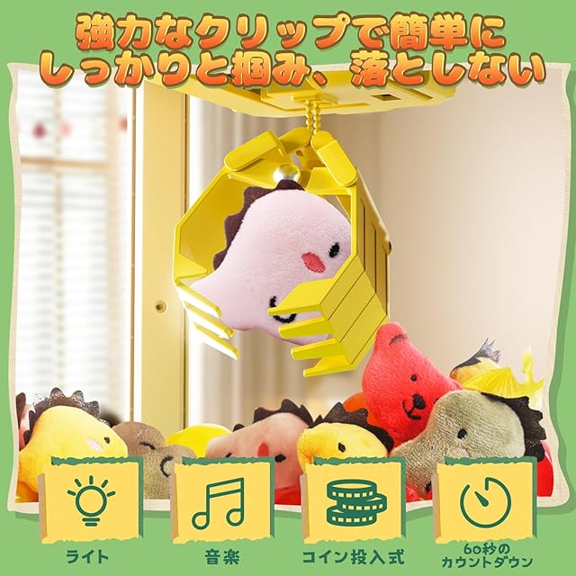 【60秒のタイマー付き】60秒間のカウントダウンタイマーで、ゲームにワクワク感がプラス。時間内に景品をキャッチするスリルで、集中力もアップ!