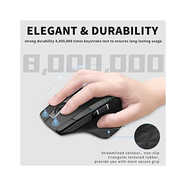 【人間工学設計&快適な操作】このBluetoothマウスは、Hall磁気側スクロールホイールと500,000回の中央ボタンスクロールを搭載。エルゴノミクスに基づくデザインで親指のサポートもあり、手にフィットし、長時間の使用でも快適です。特に大きな手の方にも適しています。