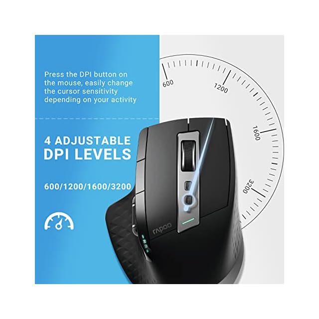 RAPOO MT750 マウス 無線 ワイヤレス Bluetooth 5.0/2.4GHz 充電式 4段階DPI切替 最大4台デバイス接続対応 エルゴノミクス設計 6プログラムボタン 光学マウス 側ローラー付き PC/MacBook/パソコン/タブレット対応 ブラック | primer