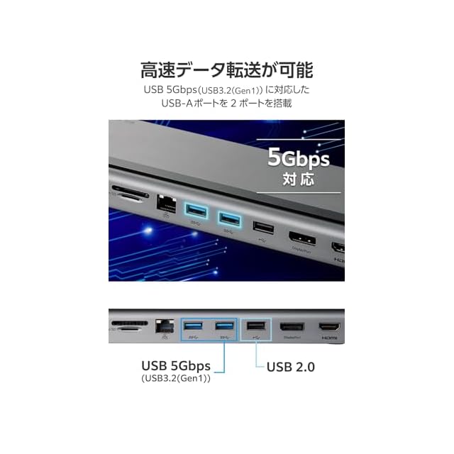 パソコン本体との接続は、最大5Gbps(理論値)の超高速データ転送を実現するUSB 5Gbps(USB3.2(Gen1))に対応しています。