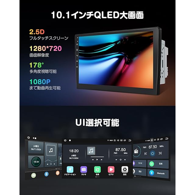 【10.1インチQLED大画面】驚異的な色再現性と鮮明さを実現します。1280*720の高解像度により、細部までくっきりと映し出し、視覚体験を新たな次元へと引き上げます。【UI選択可能】お客様の好みに応じて、本機のUIをカスタマイズすることができます。設定メニューから、パネルライトカラーも気分次第に自由に変更できます。