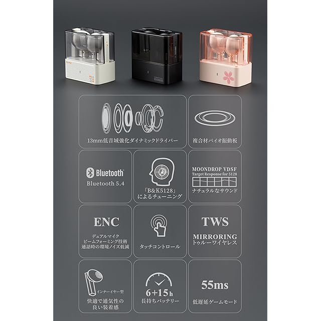 水月雨 Moondrop 方糖 - Block ワイヤレス イヤホン Bluetooth 5.4 インナーイヤー型 最大21時間音楽再生 / インナーイヤー / 13㎜低音域強化ダイナミックドライバー/完全ワイヤレスイヤホン /「B&K5128」によるチューニング/長持ちバッテリー/低遅延ゲームモード ホワイト | primer