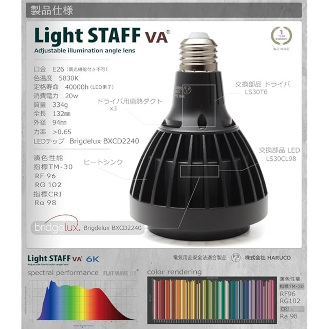 HaruDesign 植物育成ライト Light STAFF VA 6K FtW フラットウェーブLED搭載 白色系 5800ケルビン 製品3年保証