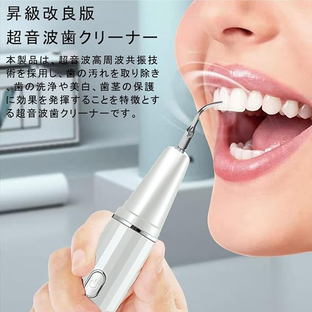 【安全保護設計】電源を入れた後、歯茎や柔らかい物に接触した時に超音波振動が発生しません。必ず歯やセラミック、金属製品に触れた後、製品が明らかに振働します。LEDライトで安全に使用でき。