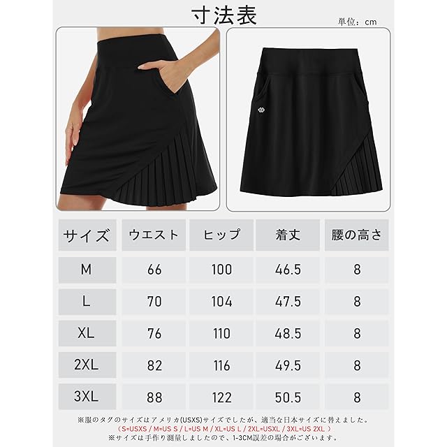 【場合】テニススカートは、テニス、ゴルフ、ランニング、フィットネス、陸上、サイクリング、トレッキングなどのアウトドアスポーツや日常のカジュアルな場面にぴったりです。あらゆる季節、あらゆる場所で活躍します。▲パッケージとスカートのサイズラベルがアメリカ(US)サイズなのです。【S=JPS=USXS 、M=JPM=USS、L=JPL=USM、XL=JPXL=USL、2XL=JP2XL=USXL、3XL=JP3XL=US2XL】日本(JP)サイズ表を参照してお選びいただけますようお願いいたします。