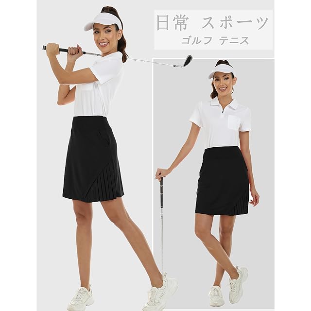 【快適な素材】このゴルフスカートはポリエステルとスパンデックスで作られています。柔らかく、快適な素材で通気性が良く、吸汗速乾性、高い弾力性が特徴です。テニススカートとしても理想的です。
