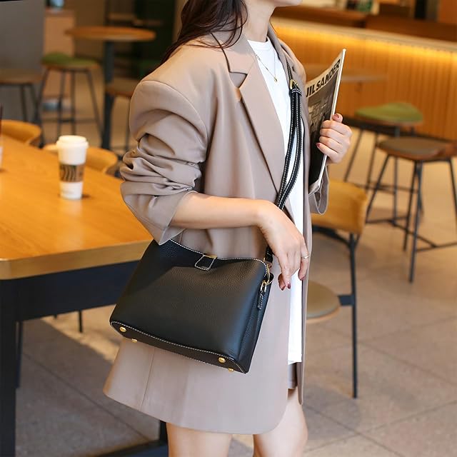 [Kyoei-Tech] ショルダーバッグ レディース ハンドバッグ 斜め掛け 手提げ 本革 レザーバッグ 軽量 牛革 バッグ 鞄 カバン 肩掛け 自立性 上品 高見え お洒落 フォーマル カジュアル おしゃれ かわいい シンプル きれいめ 通勤 デート (ブッラク) | primer