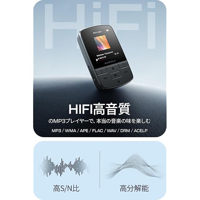「128GBまでの拡張可能な大容量」このSurfola MP3プレーヤーは、64GBのメモリーカードが付属しており、最大128GBのマイクロSDカードもサポートします。これにより、お気に入りの曲やファイルをたくさん保存でき、いつでも手軽にアクセス可能です。最大で約8000曲をダウンロードでき、MP3/WMA/APE/FLAC / WAV/DRM/OGG/AAC-LC/ACELP形式のオーディオ再生にも対応しています。
